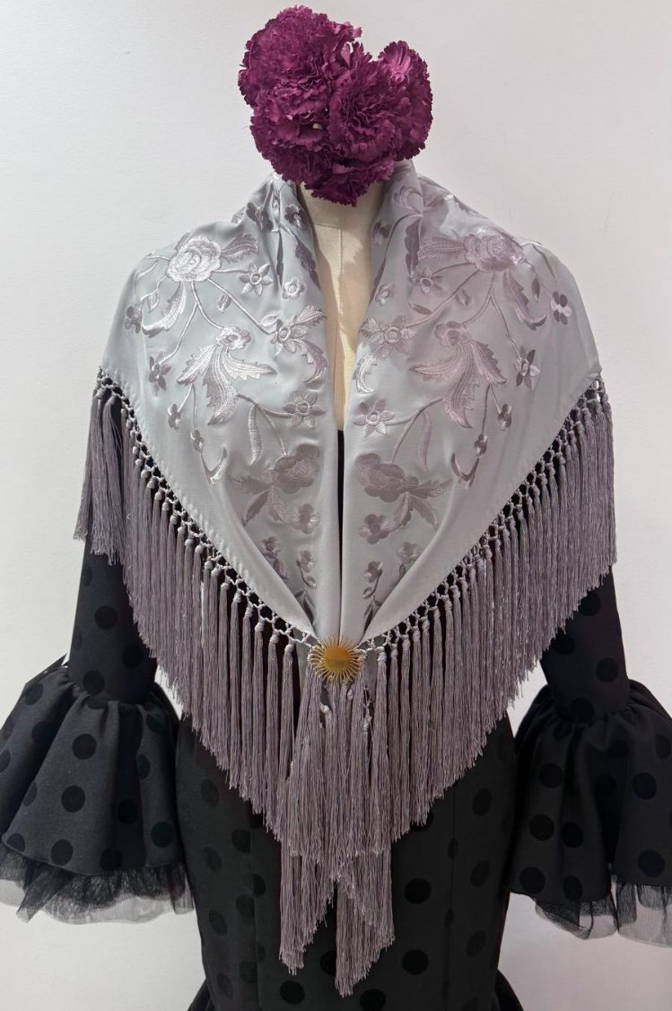 Confeccionado artesanalmente en Sevilla, este mantoncillo bordado conserva la esencia de la moda flamenca más tradicional con un toque mas actual.