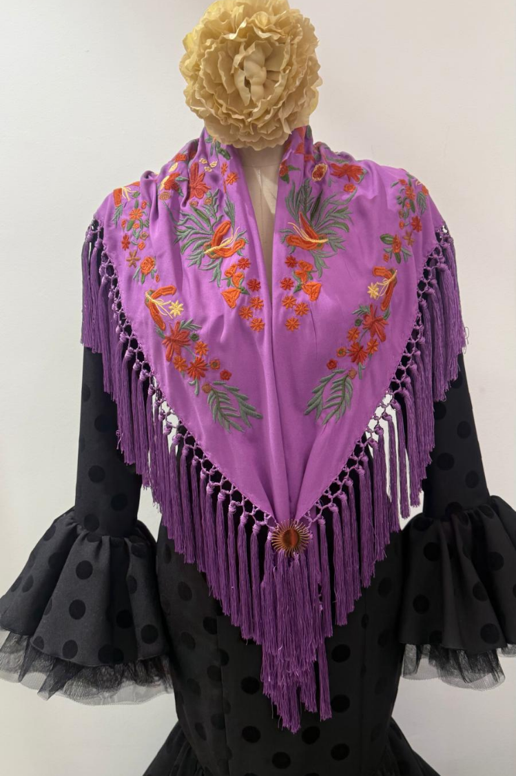 Confeccionado artesanalmente en Sevilla, este mantoncillo bordado conserva la esencia de la moda flamenca más tradicional con un toque mas actual.